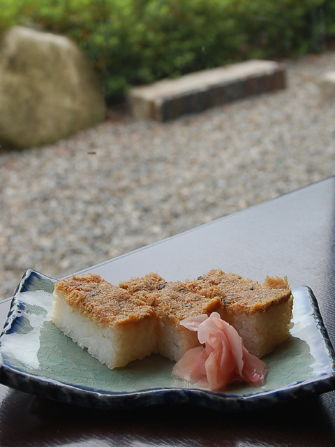 夏の夜、照明に浮かび上がる露天風呂……。20分ほど離れたところに僕の日常があるにも関わらず旅情がある……。地元で養殖された岩魚を使ったオリジナル料理「岩魚の箱寿し」を食べればそこはもう旅の宿。明日のことなどどこ吹く風と、永源寺を満喫したいものである。