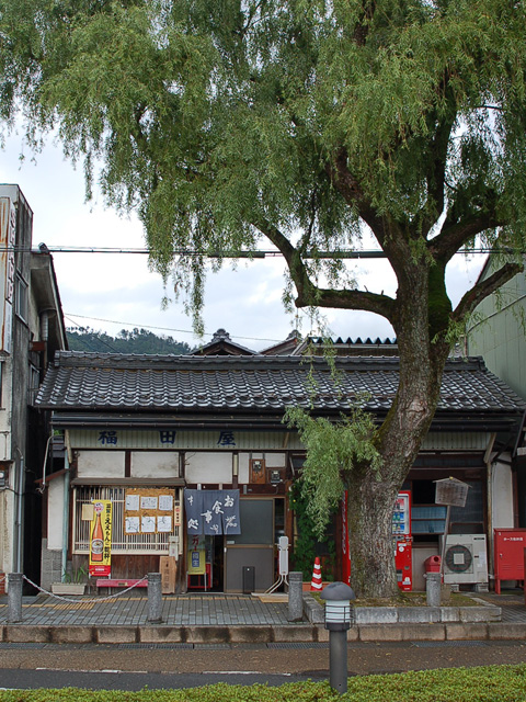 JR木ノ本駅前の「福田屋」は、創業から70年以上続く老舗の食事処である。店の前にある大きな柳の古木が目印で、土間を改装した店内の落ち着いた雰囲気や裏口から馴染みが来店する様子は、今も昔も相変わらずである。