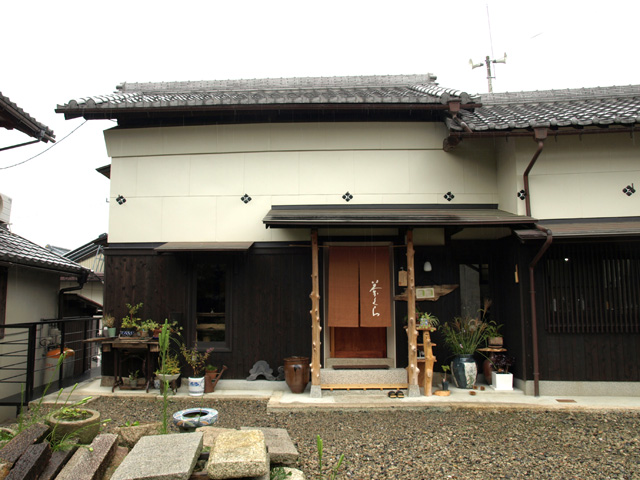 旧愛東町。稲刈りの終わった田が連なる集落のなかに、茶房「茶くら」はある。
