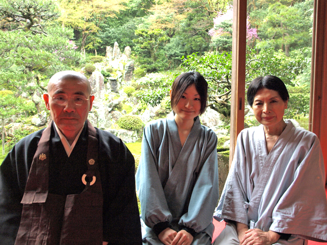 ご住職の永島亮昭さん、妻の慧子さん、お嬢さんの慧明さんにお迎えいただいた。少し緊張した。