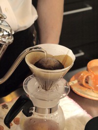 カウンターからは中山さんがコーヒーを淹れる様子がよくわかる。「一般家庭で普及率の高いペーパードリップを使って、淹れる様子を見てもらうことで、正しい淹れ方を実践していただければ」と中山さんは説明する。