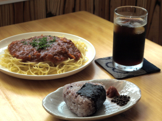 ブレンドコーヒー200円、アイスコーヒー250円、コロンビアコーヒー250円、コーヒーゼリー150円、うどん300円、おにぎり50円、スパゲティ400円など