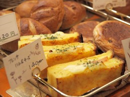 バゲット220円、クロワッサン120円、オレンジベーグル140円、バナナブレッド120円、ベーコンエピ160円、チョコラクーロンヌ160円、クッキーチーズ120円など
