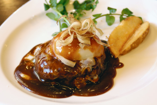 バーで食べるハンバーグ