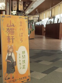 ルッチプラザ内のレストラン「粗!一寸(そ いっすん)」では展示にあわせて「まいばら山猫軒」がオープンしている。山猫軒は「注文の多い料理店」に出てくる西洋料理店の屋号だ。腹をすかせた狩人が山猫軒を見つけ喜んで入ったものの、お腹を満たすどころか次々注文をつけられ食べられそうになるというストーリーである。