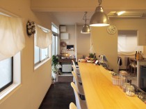 カウンター席に座るとよくわかるのだが、とにかく厨房との距離が近い。奥までが見渡せるくらいオープンになっている。そこで健さんが手際よくパスタをゆがきソースと絡めている。愛さんはお菓子の材料を計っている……。まさにライブである。話しかけて気が散らないかと心配になるほど、あまりに近い。