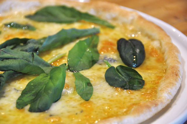 定番からユニークまで、ピザの種類はさまざまあるが、ピザクラストの魅力を楽しむにはシンプルなピザがいいかもしれない。「ゴルゴンゾーラチーズとはちみつのピザ」は、クセの強いチーズをはちみつの甘みが包んだ逸品。最初にチーズのコクが口の中に広がり、その後を優しい甘みが追いかけてくる。生地の味わいが具材と一体となって、互いの魅力を最大限に引き出している。