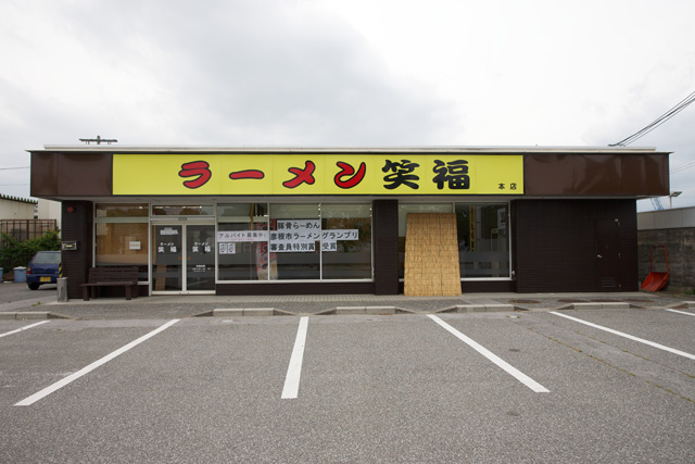ラーメン笑福は、以前、湖北みずどりステーションで営業していて、実はDADA456で取材をさせていただいた。2009年に長浜バイオ大学の前に移転し、その間にメニューも大幅に変更になった。きっかけは昨年の東日本大震災だ。