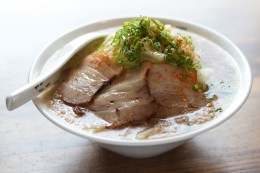 席に着くと氷の入ったグラスが出てくる。テーブルにはジャスミン茶と水のピッチャーが置いてあって、好きなほうを自分で注いで飲めるようになっている。メニューは、人気のつけめんが5種類、ラーメンは、とんこつ、醤油、塩、味噌、更にたたき背脂とバリエーション豊かだ。麺もスープに合わせて、とんこつ用の細麺、醤油用の中細麺、つけめん・味噌用の太麺の3種類を使い分けている。