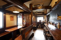 焼き鳥店を改装した店内は、狭いながらもラーメン通好きの気分を盛り上げてくれる風情がある。