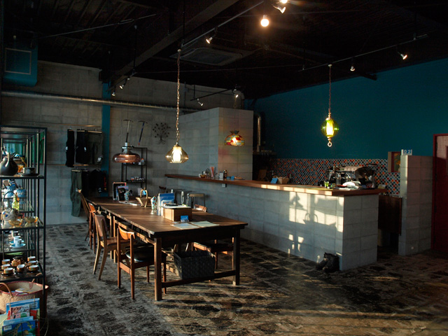 またカフェスペースやアンティーク家具のスペースも魅力的な空間になっている。ボルダリングなどの為に何度も海外に滞在したことのある店長。雨で岩に登れない日、イタリアの田舎のカフェで現地の人と話す時間も旅の楽しみのひとつだった。地域の人の憩いの場としてあるカフェの雰囲気をそのまま再現したいと、カフェスペースを開設した。味にも徹底的にこだわり、豆はナポリから空輸、水もイタリアの水の硬さと同じになるように調整したそうだ。現在ドリンクメニューが20種ほどあるが、今後はフードメニューも徐々に充実させる予定とのこと。現在は土日のみ軽食が楽しめるが、来春以降は自分たちが畑で育てた野菜を使った、身体に安心な食べ物を提供したいと考えている。