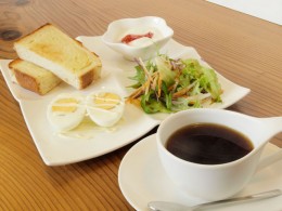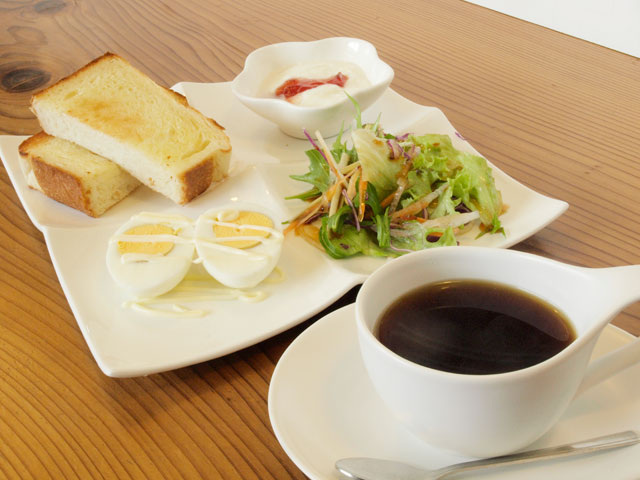 メニューはどれも女性が喜ぶようなものばかり。モーニングセットはドリンクに100円追加するだけでバタートーストやゆで卵、サラダにヨーグルトまで付いてくる。