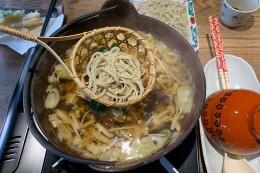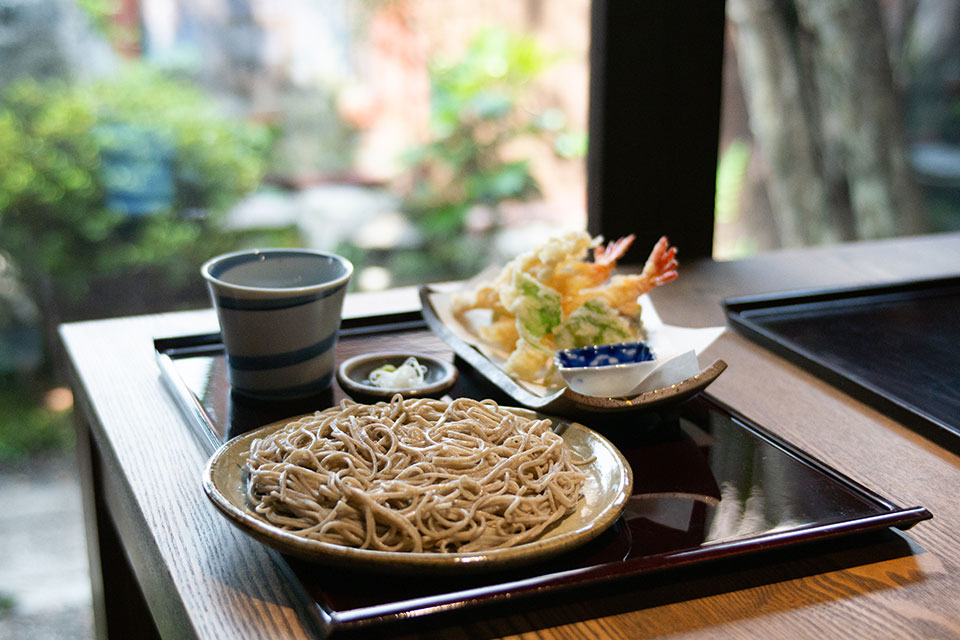 かんじんの「とうじ蕎麦」はどうだったか? 歴史的邂逅は3月末まで。「とうじ蕎麦」一人前1500円。天ぷら盛り合わせ、蕎麦豆腐をセットすると2000円。ほかほかと芯から温まる。生蕎麦を温めると食感が変わり、「とうじ」の所作が楽しく、蕎麦がなくなってしまうのが惜しくなるほどである。