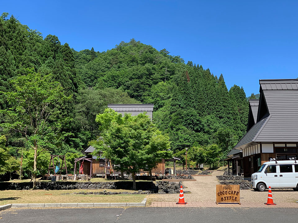 「cococafe 心風流(シンプル)」は、高時川の上流「妙理の里」にある。今年6月、オープン一周年を迎えた。緑豊かな山々に囲まれ、川のせせらぎが聞こえる静けさが心地いい。店名の「心風流」は爽やかな風が心の中に流れるようにとの思いが込められている。