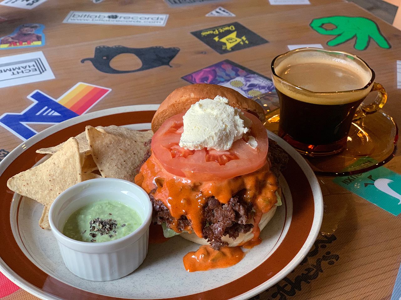 「THIS IS HAMBURGER」(1,100円)は、バンズ・牛ミンチ(100%)・トマト・レタス・オニオンを自家製ソースとホイップバターで味わう(タコスチップ付き)。ランチはプラス200円でドリンクが付く。「ハンバーガーは具材を工夫することでグルメな食べ物になる」と市川さん。タコスはランチタイム後のサイドメニューだ。一人で切り盛りしているので、セルフサービスが基本、ドリンクの注文なども簡単なルールがあるが、慣れてしまえば逆に心地良い。「いつもの自分の場所」という感じになってくる。