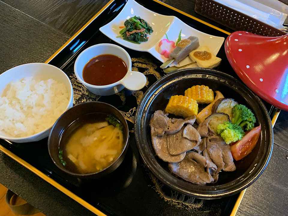 「地味あふれる鹿の焼肉ランチ(1500円)」は、前菜、余呉町産の米で炊いたご飯、味噌汁つき。地元野菜と鹿の焼肉は焼きたてでふっくらと柔らかい。僕は肉の脂身が苦手だが、鹿肉なら美味しく食べられることを発見してしまった。デザートプレートは400円。プラス100円でドリンクがつく。