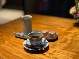1階テナント「お台処 ともゑ庵」は2021年4月にオープンしたお食事処である。ともゑ庵のお客様に食後のコーヒーを提供したいとご夫妻がはじめたのがカフェだ。食後のお客様には100円引きで提供している(カフェのみの利用も可)。香り高い珈琲を飲みながら、「来月あたりからここでパンの販売をはじめます」とお聞きした。