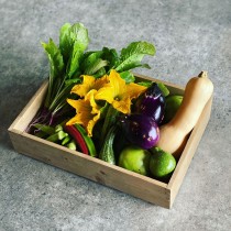 畑は2019年まで水田だったそうだ。土地には稲作を行っていた頃の肥料や農薬が残っていて、最初はイネ科の雑草しか育たなかったが、昨年はマメ科の雑草も見られるようになった。多様な雑草が生えることで土地が豊かになっていくことが実感できるのだそうだ。年間、おおよそ50種類の野菜を栽培。ファームで育てる四季折々の土の香りや風味を感じる野菜たちは、ランチタイムのサラダビュッフェでたっぷりと、ディナーではアラカルトメニューからチョイスして楽しむことができる。しかし、丹精込めてつくる野菜の成長には時間がかかり、キッチンで提供するには十分な収穫量にならない場合もある。そんなときは近隣の契約農家さんが大切に育てた無農薬野菜をつかう。魚や肉のメイン料理にも、季節野菜がたっぷり。この上ない野菜本来の味を活かした贅沢なひと皿となる。