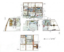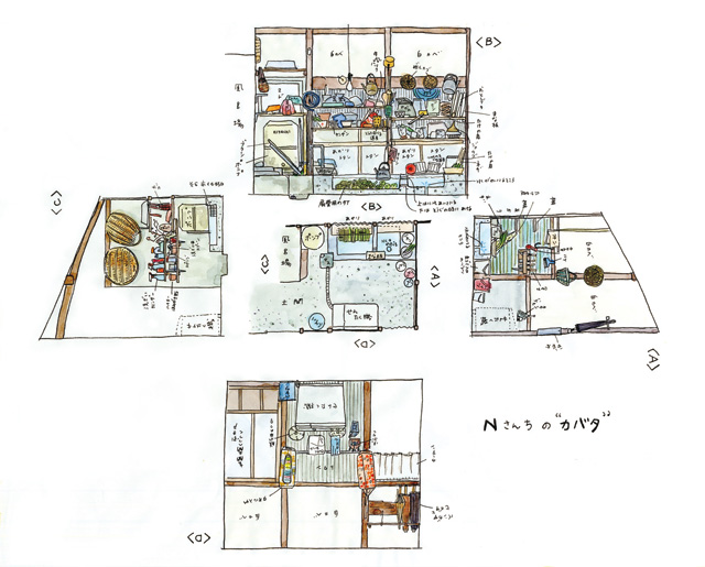 思い出すのは、お婆ちゃんちの台所、お爺ちゃんちの隠居部屋、あるいは例えば職人さんの仕事部屋とか湧水の郷に訪ねたカバタ。鍋釜食器にコメ味噌しょうゆ。新聞、めがね、文具に入れ歯に常備薬。しろうと目には見分けもつかない何百丁ものノミ、道具。桶、ザル、タワシに歯磨き粉。