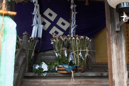 サイを退治した貞平の英雄譚は、戦乱を生き抜き織田信長に最期まで抗した鯰江氏の始祖の物語であり、春日神社の始まりの話だったのだ。現在行われている春祭り(オコナイ)の神饌(干柿と勝栗を割り竹につきさしたもの)は、貞平の出陣を祝った儀式の名残りなのだという。